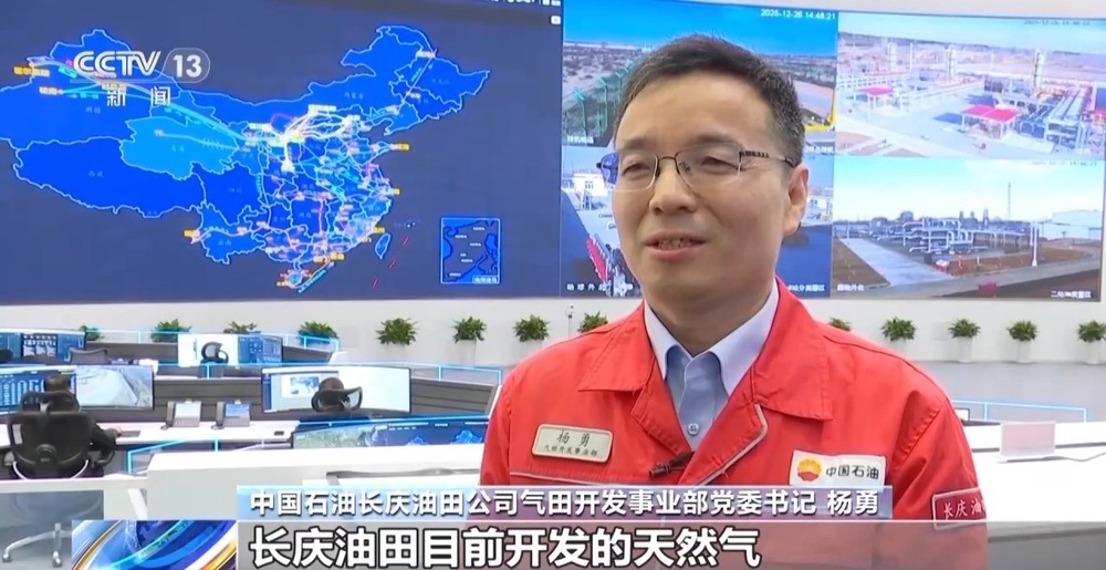 中国石油长庆油田公司出产运行部副主任 郑伟:当时已进入供暖高峰期,长庆油田的3万余口气井、3座储气库正加大马力,日供天然气量达1.6亿立方米以上。这些天然气,经过西气东输管道、陕京管道等10多条国家主干线,源源不断地输往京津冀、陕甘宁等区域的50多个大中城市,足量、安稳保证下流用户的用气需求。